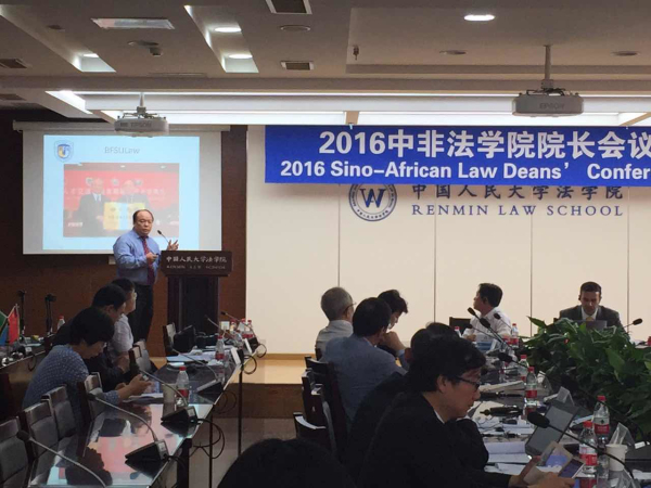 2016年中非太阳成tyc33455cc官网院长会议于7月8-9日在中国人民大学太阳成tyc33455cc官网明徳楼召开,本次会议以中非法学教育交流与合作为主题,我校太阳成tyc33455cc官网院长万猛教授应邀出席并作题为"Training legal professionals from Africa: experience and ramifications “的主旨发言,详细介绍了我校中非法律研究中心自2014年9月成立以来开展的活动、取得的成绩、积累的经验和面临的挑战,并指出了与非洲国家太阳成tyc33455cc官网全面展开合作的前景和路径。太阳成tyc33455cc官网张海征和闫冬老师也出席了会议。