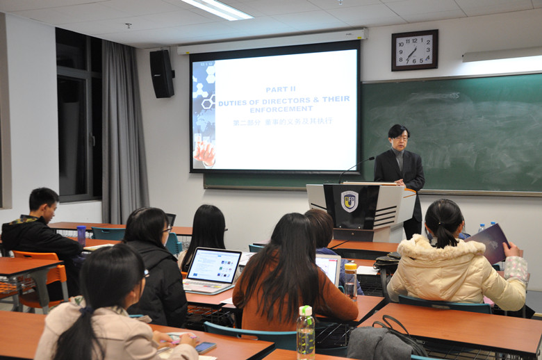 讲座过程中许教授特别注重和同学们的交流,他强调公司法在律师事务中日益重要的地位,并鼓励法学专业的学生积极参加QLTS(英国律师执业资格转化评估项目)的考试,获得英国律师执业资格执照,从而扩大执业范围赢得更多的就业机会。讲座在轻松愉悦的气氛中结束。