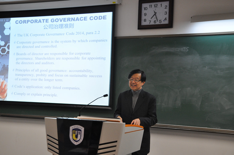 此行,许教授开展了两次与公司法相关的讲座,第一讲的主题是“公司治理、董事的义务和执行”。首先许教授简要介绍了《2014英国公司治理准则》和《2012英国公司管理守则》,接着阐述了公司内部存在的五种不同类型的董事,及其义务和职责,并同中国的公司法进行对比。