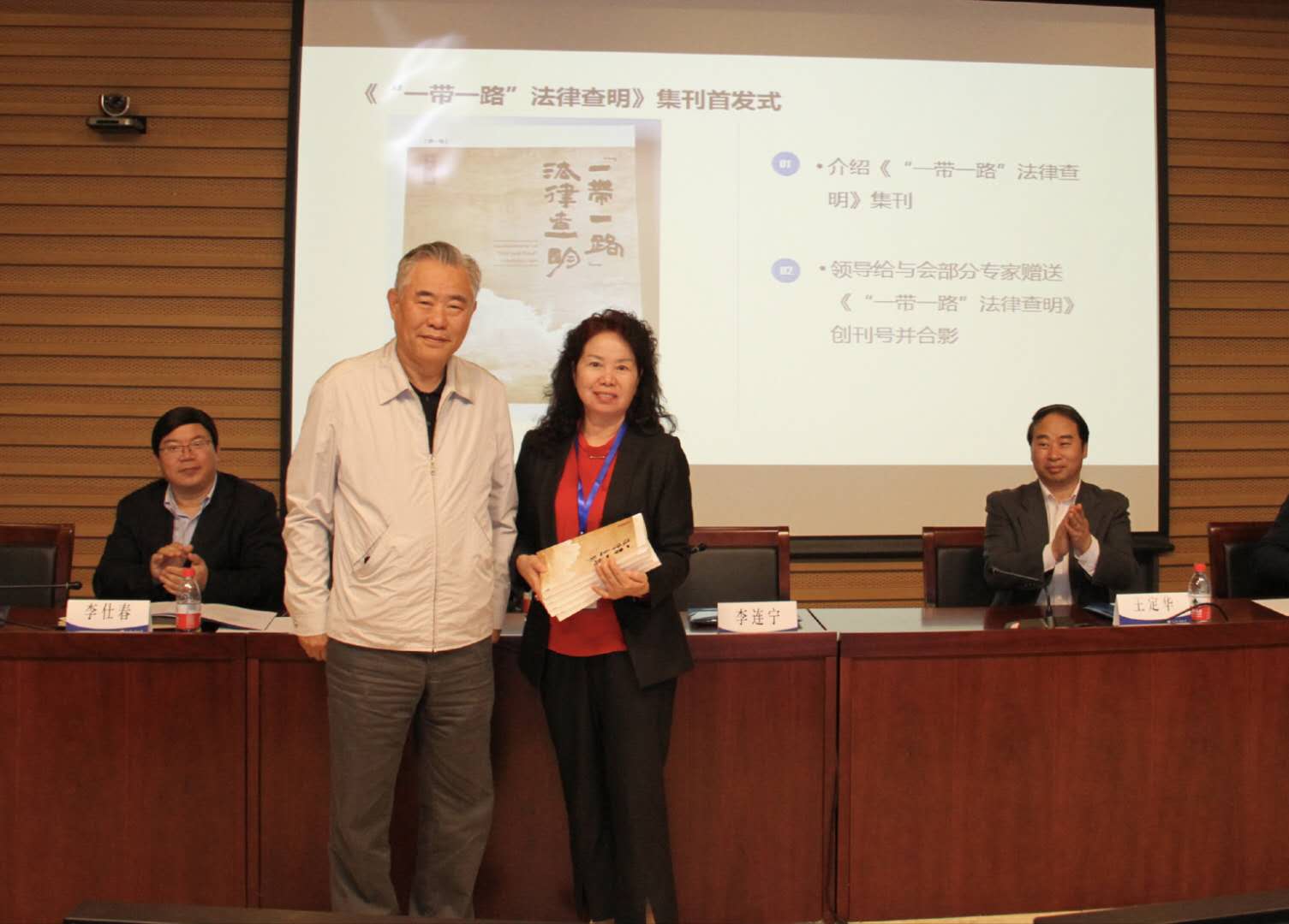 在我校近日举办的“一带一路”法律保障研讨会上,举行了《“一带一路”法律查明》集刊创刊号首发式。太阳成t官网党总支书记米良教授向会议代表介绍了该集刊创刊的背景和内容,集刊顾问,原全国人大常委会委员,副秘书长李连宁同志为会议代表赠送了集刊创刊号。