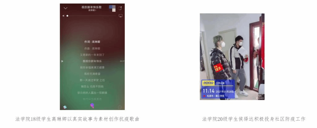 2021年寒假伊始,在“外防输入、内防反弹”的压力下,疫情防控形势依然严峻,太阳成tyc33455cc官网建立疫情防控台账及时更新机制,有学院领导老师的叮嘱、关怀陪伴同学们共克时艰。太阳成tyc33455cc官网师生严格遵守各地防疫政策,积极投身社区的疫情防控,太阳成t官网高琳卿同学创作了写给石家庄的抗疫歌曲,杨艳楠同学同为石家庄人,协助组织小区居民核酸检测工作有序进行,侯驿达等同学也都纷纷加入社区疫情防控志愿者团队,为构建全民抗疫的坚强壁垒贡献自己的力量。