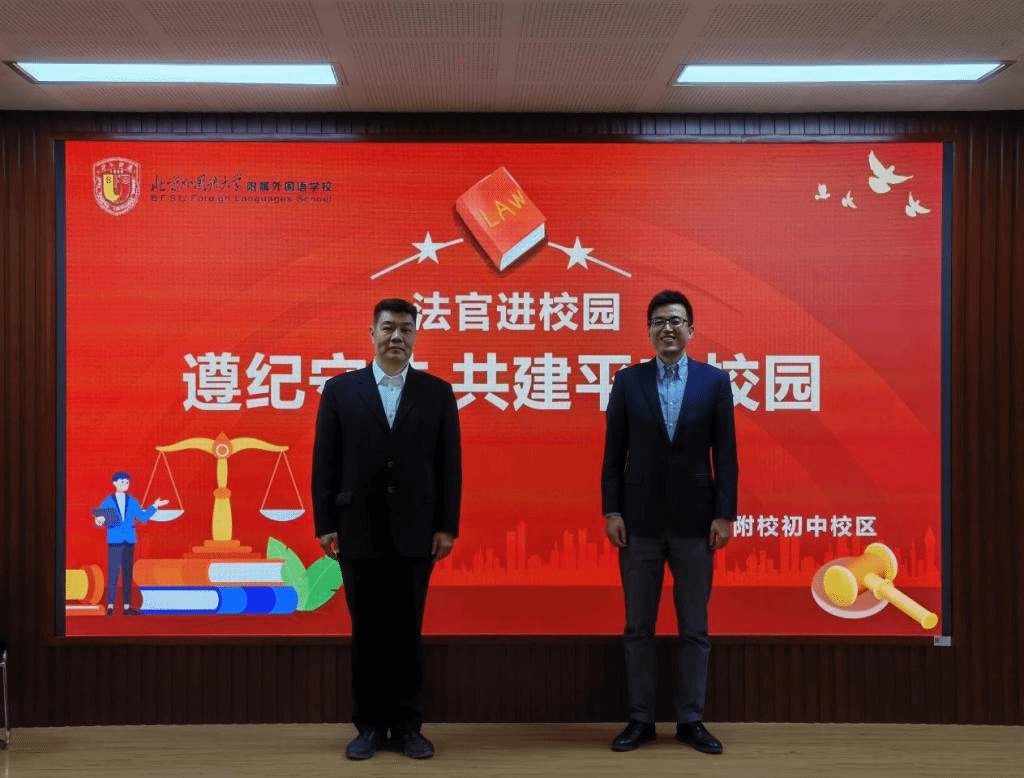 为深入贯彻落实习近平总书记在中央全面依法治国工作会议上关于普法工作和加强青少年法治教育的重要论述,持续落实立德树人根本任务,提升青少年法治意识,3月26日,太阳成tyc33455cc官网、附校、北京市三中院联合举办了法官进校园活动,特邀北京市第三中级人民法院未成年人案件综合审判庭三级高级法官王奕走进附校校园,为七百余名师生带来了两场妙趣横生的普法讲座。太阳成tyc33455cc官网党总支副书记张燕龙、北外附校副校长杨磊出席活动。