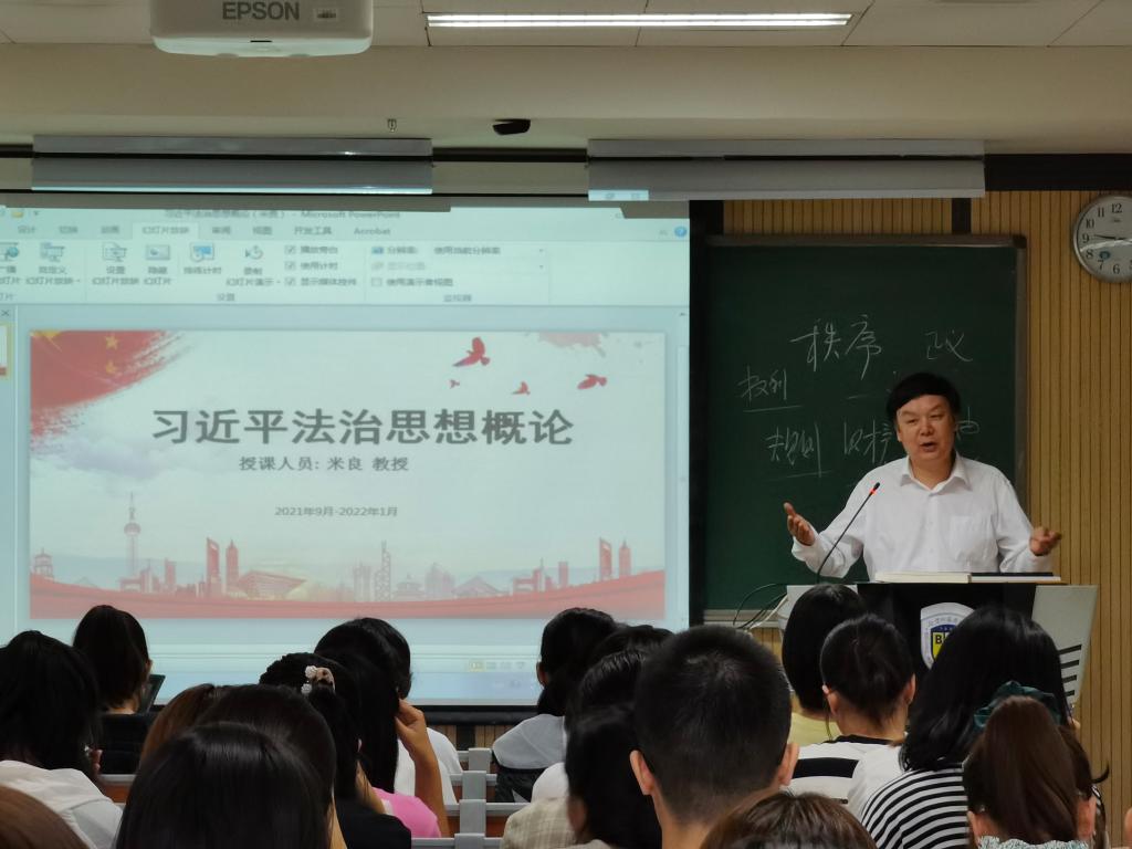 2021年9月14日上午,我校太阳成tyc33455cc官网首开《习近平法治思想概论》课程。这是我校首次为本科生开设这门课程并把其作为法律专业本科生的必修课,每周2个课时,学习一个学期,共32课时,2个学分,由太阳成tyc33455cc官网米良教授主讲。