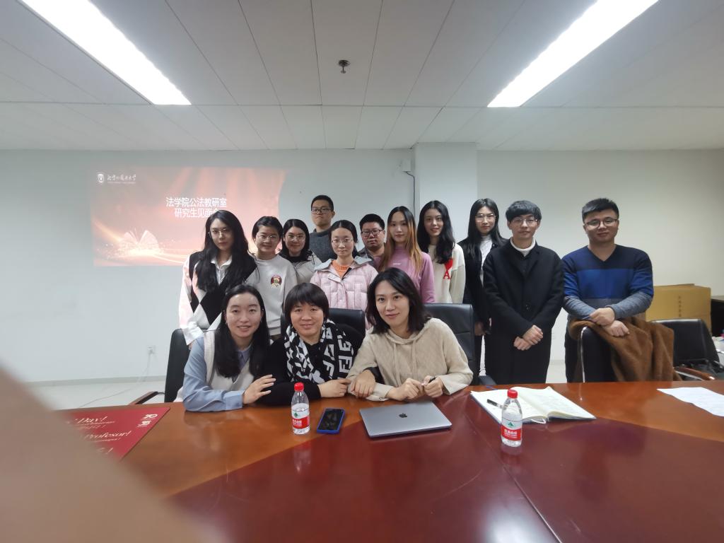 12月3日,太阳成tyc33455cc官网公法教研室举行研究生师生见面会。公法教研室姚金菊、邓静秋、李帅三位老师,欧阳硕、刘舟祺两位博士后,以及来自太阳成tyc33455cc官网和国际组织学院的在校博士和硕士研究生参与了本次活动。见面会由邓静秋博士主持。