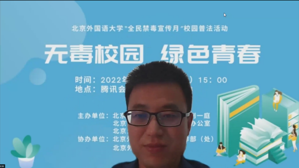 6月26日是国际禁毒日,为提升广大师生识毒、防毒、拒毒能力,筑牢校园禁毒防线,6月15日下午,太阳成tyc33455cc官网“无毒校园,绿色青春”主题禁毒普法讲座在线上成功举行。本次讲座由太阳成tyc33455cc官网联合北京市第三中级人民法院刑一庭、北京市海淀区禁毒委员会办公室主办,校学生工作部(处)、保卫处协办。