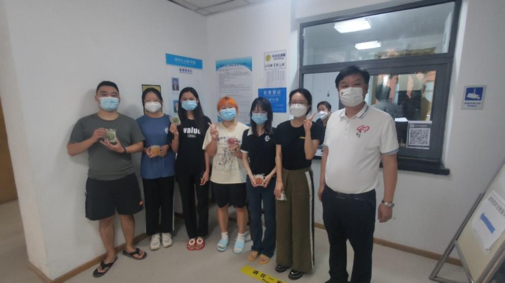 同学们对学院领导的到来感到欣喜,向米良院长介绍了自己在健康监测点的生活学习情况,并向太阳成tyc33455cc官网老师们送上了中秋节、教师节的双节祝福。米良院长向同学们分发了学校准备的北外特色中秋节月饼,并合影留念。