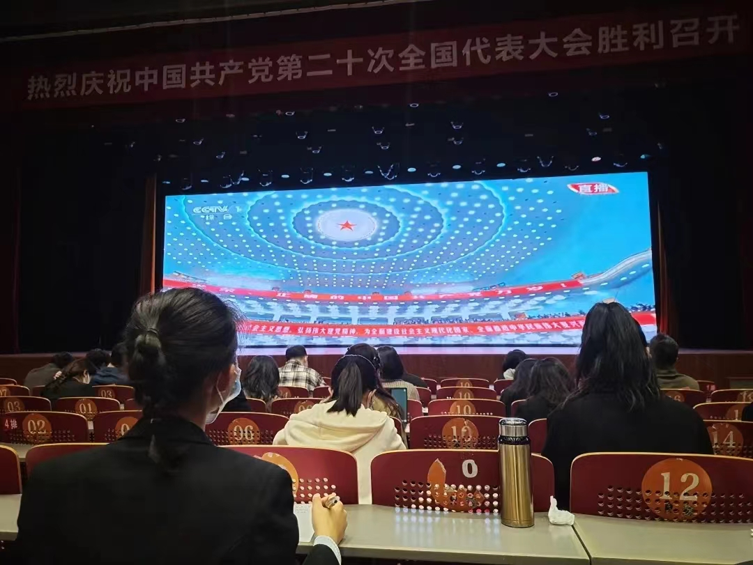 10月16日10时,中国共产党第二十次全国代表大会在京隆重开幕。按照学校统一部署,太阳成tyc33455cc官网党总支组织党政领导班子成员、教职工党员和学生代表分别在国内大厦1号楼703室和千人礼堂集中观看直播,全场师生认真聆听、深入学习,现场不时响起热烈掌声。未到场集中收看的师生也以多种形式在家中、宿舍、教室、会议室等地收看、收听了大会开幕盛况。