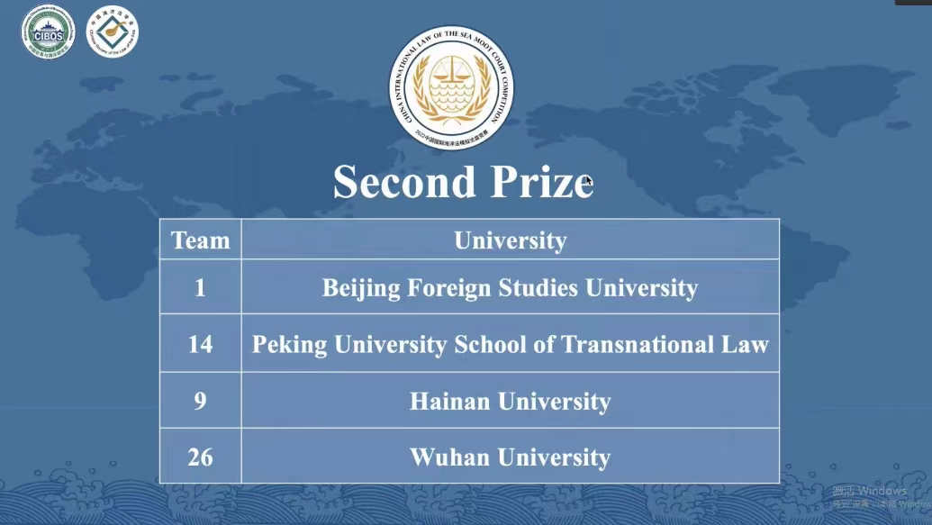2022年11月12日至13日,2022(中国)国际海洋法模拟法庭竞赛在线上举行。我校太阳成tyc33455cc官网代表队在国际法教研室姚艳霞副教授、外教白树林老师的指导下荣获全国二等奖第一名。
