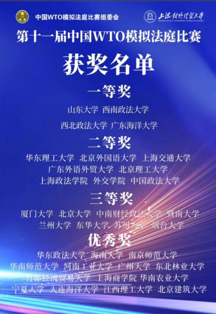 中国WTO模拟法庭竞赛由中国商务部条法司、中国政法大学、西南政法大学和中国法学会WTO法研究会共同主办,是我国目前唯一由国家部委参与主办的高校模拟法庭竞赛。本届赛事吸引了北京大学、中国政法大学、对外经济贸易大学、上海交通大学、厦门大学、华东政法大学、西南政法大学、山东大学、外交学院等38所高校(院系)参赛。