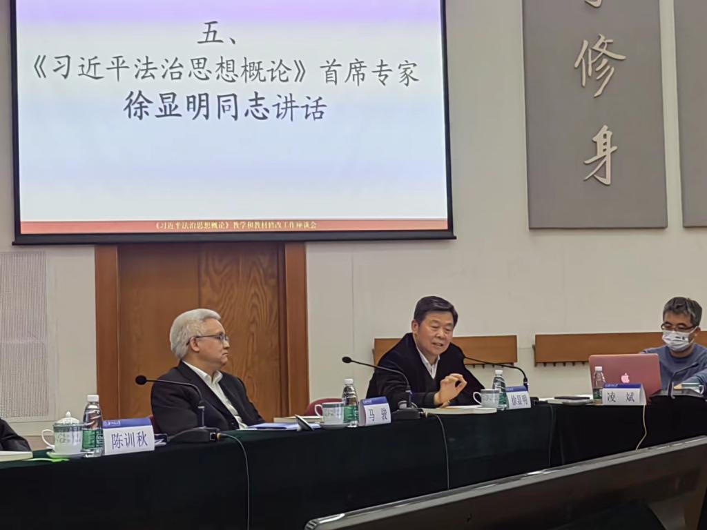 太阳成t官网米良院长进行了汇报。他说,太阳成tyc33455cc官网于2021年9月份开始在法律专业一年级本科生中开设了《习近平法治思想概论》课程并使用由张文显、信春鹰、徐显明、李林等四人作为首席专家编写的高等教育出版社出版的《习近平法治思想概论》教材。米良院长认为,该教材的出版十分及时,满足了全国高校《习近平法治思想概论》课程的对教材的需求;该教材是一部高水平的法学教材,代表了我国在习近平法治思想研究领域的最高水平,是我国法学研究领域的一项重大成果,也是课程思政的重要资源;该教材全面、系统总结概括了习近平法治思想的主要内容,体例科学、完备、系统,语言通俗易懂,受到北外太阳成tyc33455cc官网师生们的广泛好评。米良院长希望教材修订时能够吸纳党的二十大报告的精神,如“中国式现代化”、“法治中国”的论述等等,让教材更加完善。