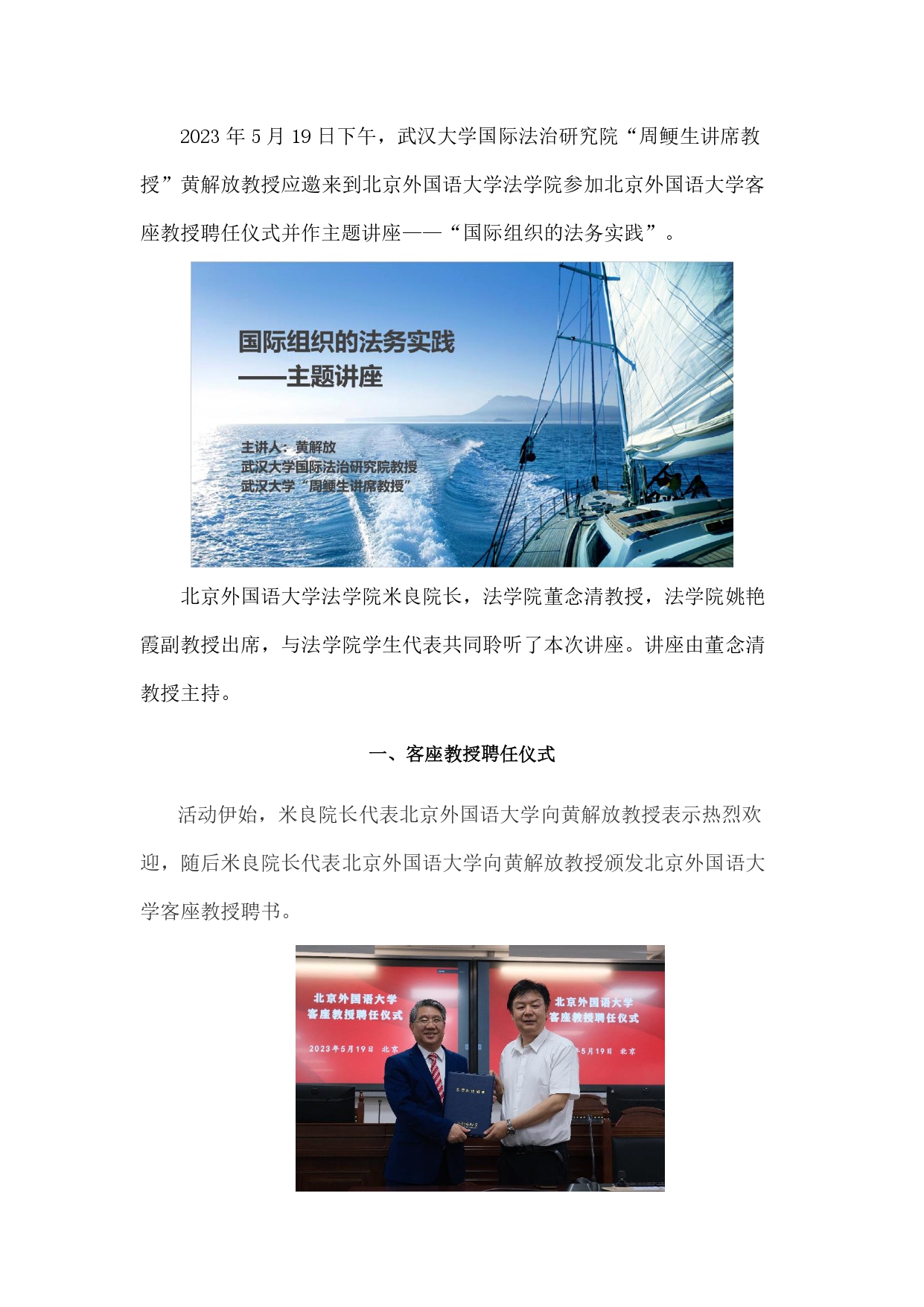 黄解放教授应邀到太阳成tyc33455cc官网受聘太阳成tyc33455cc官网客座教授并作主题讲座