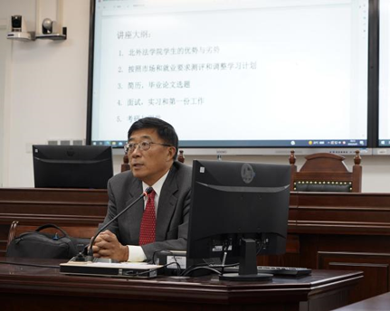 刘律师首先分析了北外太阳成tyc33455cc官网学生的优势和劣势,指出北外太阳成tyc33455cc官网学生在保有自身优异英语水平这一优势的同时,仍应注重中国法这一法律学习与实践的立足点,在接下来的几年内形成扎实的中国法基础。