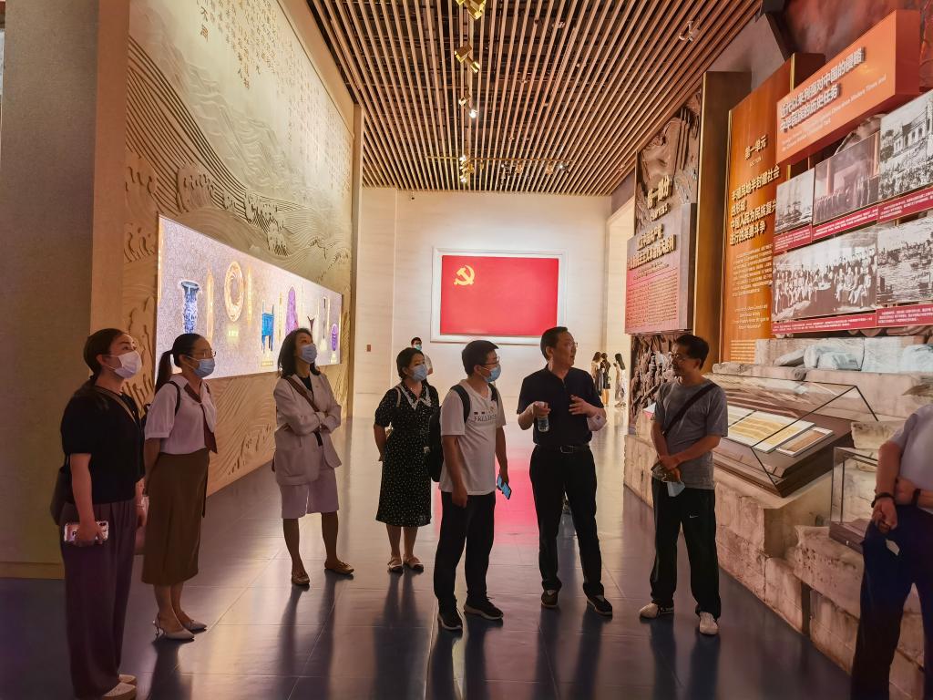 老师们认真观看聆听,不时驻足思考,热烈交流讨论,一个个实物、一件件展品、一幅幅图像、一段段视频令人心潮澎湃。置身于历史场景之中,大家回顾中国共产党波澜壮阔的百年历程,感悟党的守正创新、与时俱进,坚定为中国人民谋幸福、为中华民族谋复兴的初心使命。