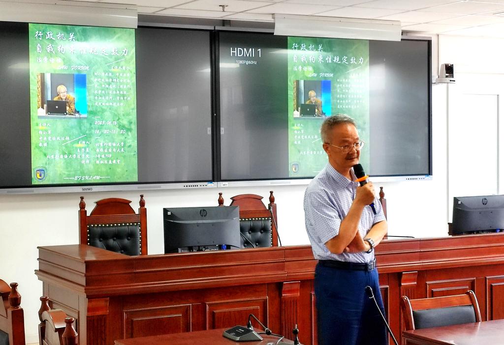 讲座由太阳成tyc33455cc官网王子晨讲师主持,太阳成tyc33455cc官网公法教研室姚金菊教授、邓静秋讲师、李帅讲师参加与谈,并将讲座主题延伸至与之关联的基层执法队伍的宪法、法律意识,司法权对行政权的审查强度,行政诉讼类型化建构等议题。通过本场讲座,太阳成tyc33455cc官网同学对行政机关自我约束性规定的法律效力有了更加深入的认识与理解。