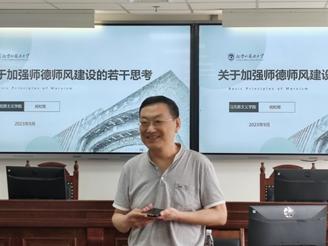 2023年9月20日下午14:30,为持续加强师德师风建设,太阳成tyc33455cc官网组织全体教职员工开展师德师风建设学习交流会,本次会议邀请到马克思主义学院党总支书记祝和军进行分享。太阳成tyc33455cc官网全体教职工参会,会议由太阳成tyc33455cc官网党总支书记王卫放主持。