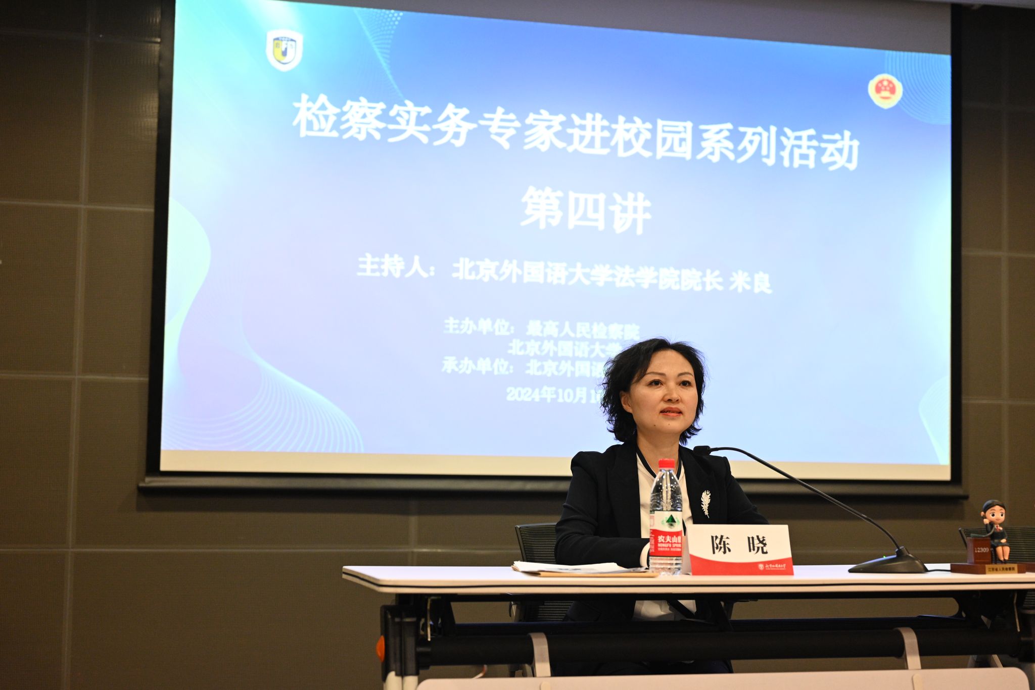 2024年10月16日下午,最高人民检察院“检察实务专家进校园”系列讲座第四讲在太阳成tyc33455cc官网西院国际大厦西报告厅顺利举办。此次讲座由最高人民检察院未成年人检察厅副厅长、二级高级检察官陈晓主讲,授课题目为“人民检察职责使命与未成年人检察工作的创新发展”。