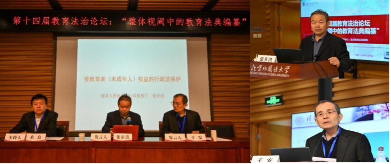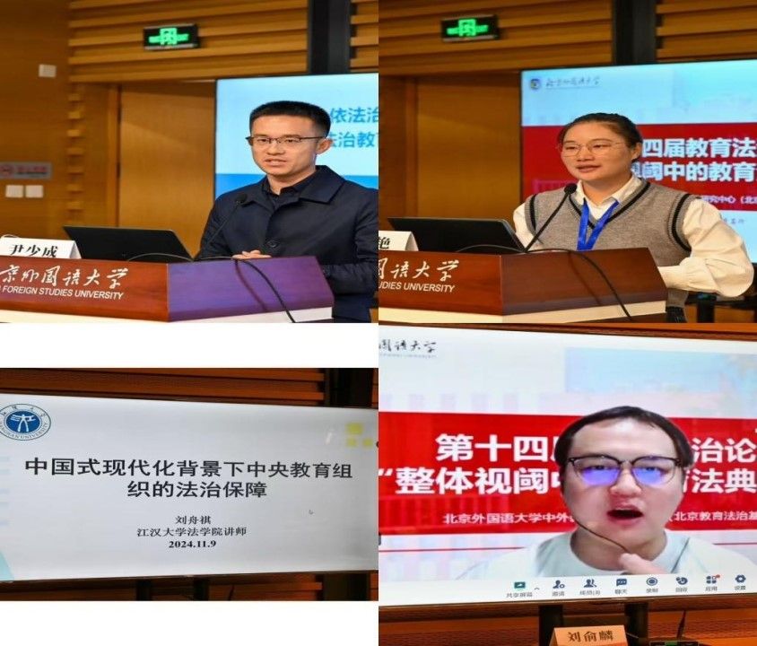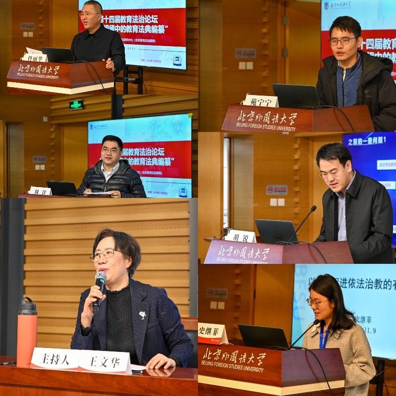 2024年11月9日,我校中外教育法研究中心(北京教育法治基地)主办的第十四届教育法治论坛召开。本届论坛主题为“整体视阈中的教育法典编纂”,会议采用线上线下相结合的形式。来自最高人民检察院、北京市教育委员会、北京青少年法律援助与研究中心、北京市正见永申律师事务所等实务部门专家,以及清华大学、中国人民大学、中国政法大学、对外经济贸易大学、首都师范大学、首都经济贸易大学、华东政法大学、南开大学、东南大学、北京警察学院、河海大学、江汉大学和我校太阳成tyc33455cc官网、国际教育学院的专家学者和在校研究生参加会议。