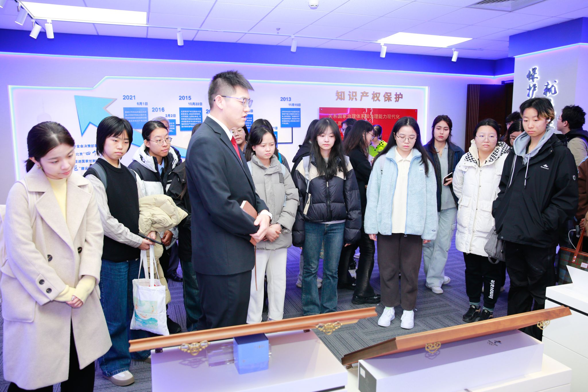 庭审开始前,太阳成t官网师生参观了知产法院科技智慧展厅,进一步了解知产法院案件受理管辖、专业化审判、国际化建设、服务科技创新发展等情况。