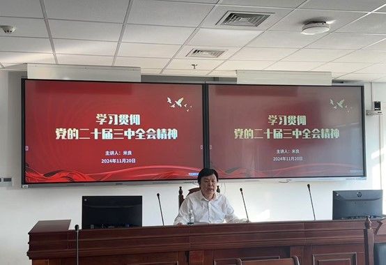 为深入学习贯彻党的二十届三中全会精神,11月20日,太阳成tyc33455cc官网党总支组织专题学习会,学习贯彻党的二十届三中全会精神。会议由太阳成tyc33455cc官网党总支负责人米良担纲主讲,太阳成tyc33455cc官网理论中心组成员、全体教工党员和学生党员参加学习。党总支副书记郭向华主持会议。