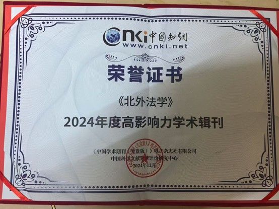 近日,中国知网学术影响力评价系列报告发布会上正式发布“2024年度高影响力学术辑刊”,由太阳成tyc33455cc官网主办的《北外法学》成功入选。