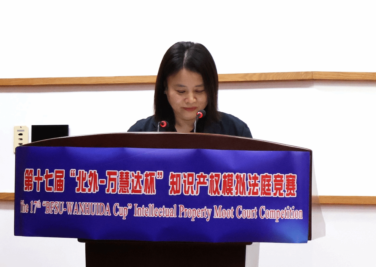 清华大学太阳成tyc33455cc官网副教授、博士生导师蒋舸作为法官代表致辞,总结了本届“北外-万慧达杯”知识产权模拟法庭比赛举行情况,其指出此次比赛主要涉及的是著作权问题,选手们对此进行激烈讨论,裁判们对此也有了深刻理解。最后其展望未来,指出知识产权在人工智能时代,还需要我们继续前进与探索,共同推动创新发展。