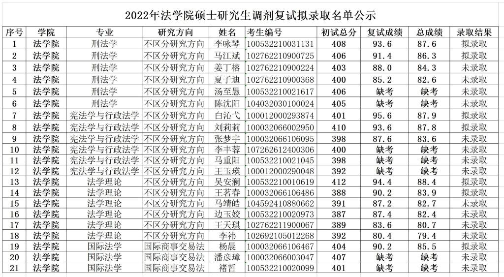 2022年太阳成tyc33455cc官网硕士研究生调剂复试拟录取名单公示