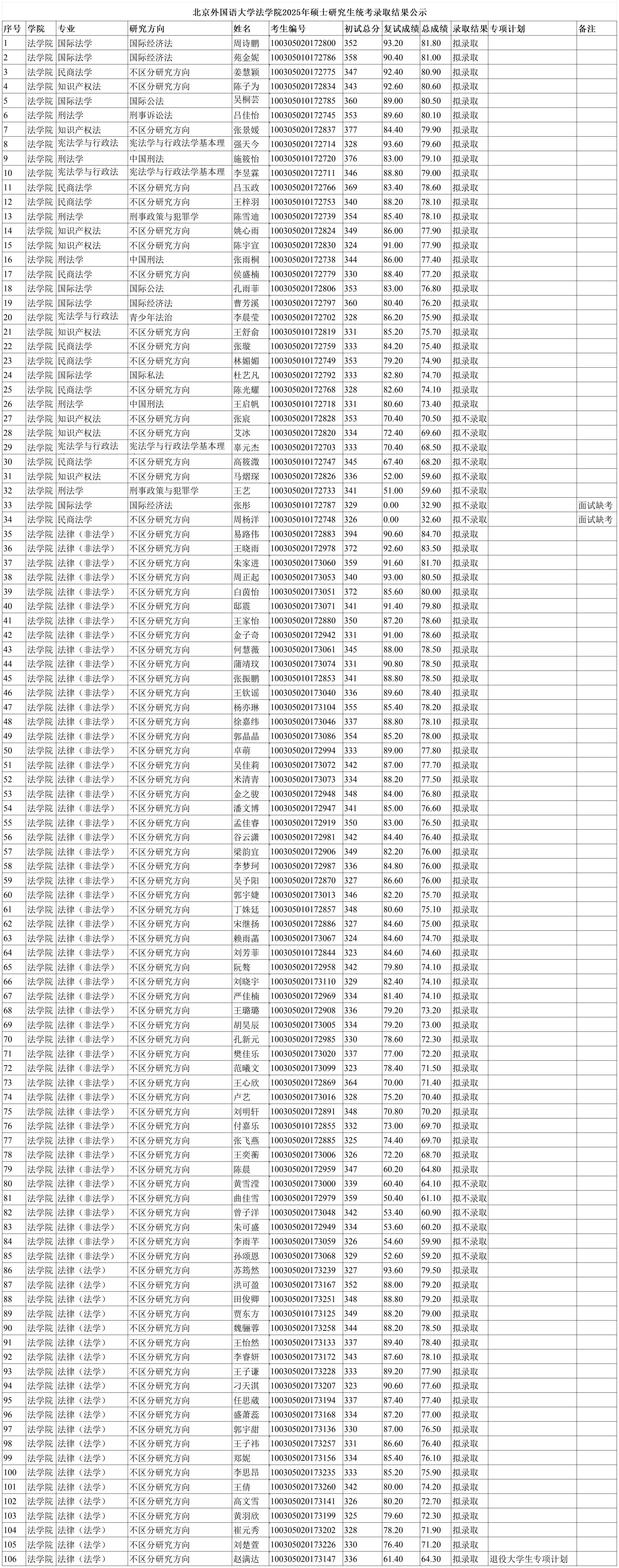 太阳成tyc33455cc官网2025年硕士研究生统考录取结果公示